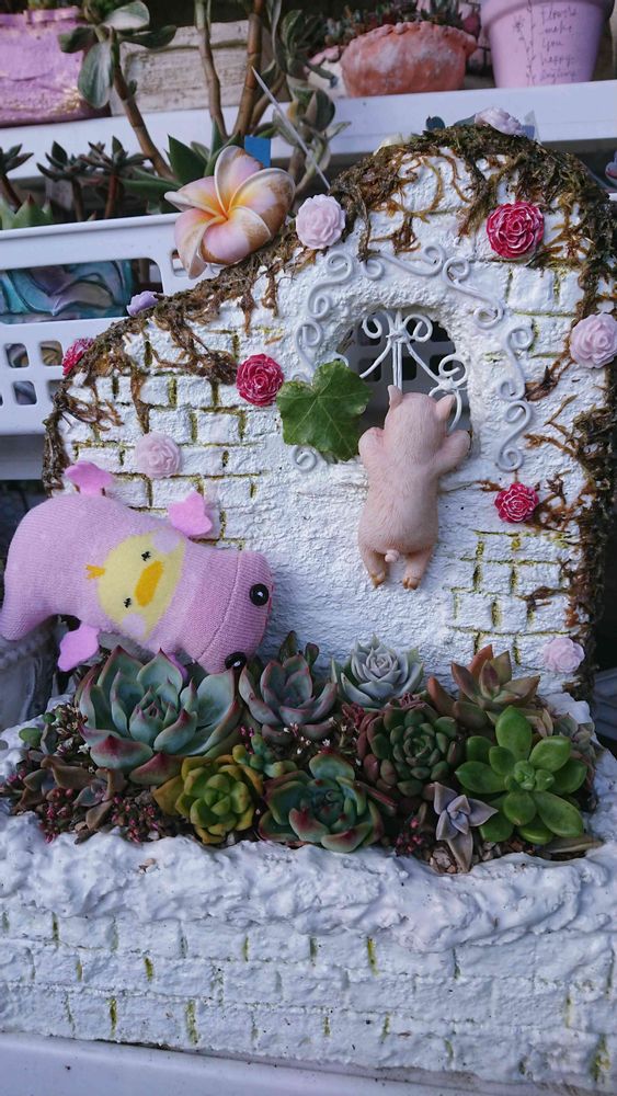 こんばんは。窓の外から懸命に部屋の中の楽しげな様子を伺う動物たちのコミカルな動きや、花壇に咲く多肉ちゃんを沢山配し、素敵な白いレンガ作りの作り込みの素晴らしさに感動しました。絵本の世界に飛び込んだ錯覚に陥りました。明日も素敵な時間を多肉ちゃんと共にお過ごし下さい。