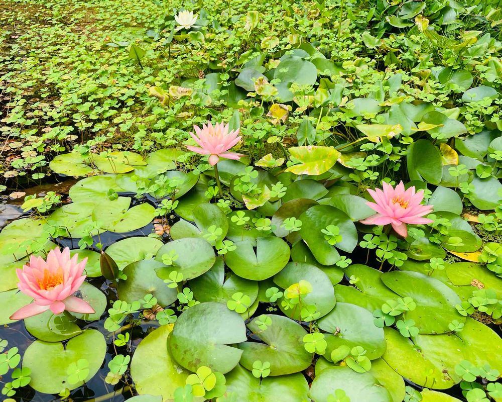 グリーンの睡蓮の葉と別の葉の中に咲くピンクの睡蓮がすごく映えて綺麗でした🥰