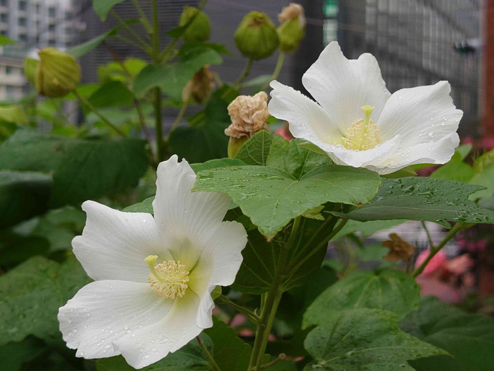 通勤途中に見かけた白いフヨウの花も綺麗でした。