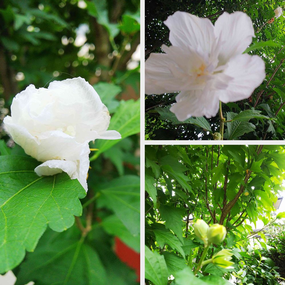 お花の好きな親友さんが植えた、フワフワの綺麗なムクゲの花夏の楽しみです❀😃