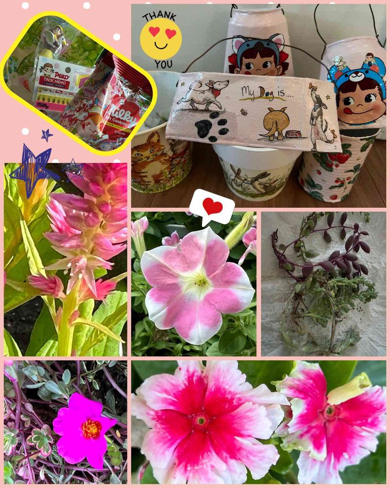 🏷素敵便🎁リメ缶🥫リメ鉢🪴、多肉さんにお菓子🍬🍭 、付箋メモにペコちゃんの🔔、メッセージカードにたくさんつまったお気持ち♡🥰❥ᴛʜᴀɴᴋs ⸒⸒