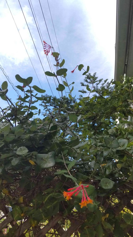 久し振りの青空にハニーサックルも樅の木も気持ち良さそう💙🎵