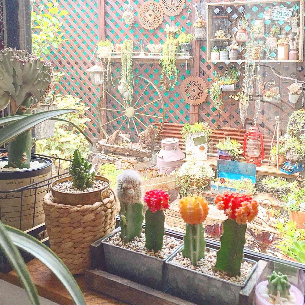 カラフルなサボテンちゃん達目を引きますね♡とっても素敵なお庭で憧れてます😊インスタでもフォローさせて貰っていていつも癒されてます✨