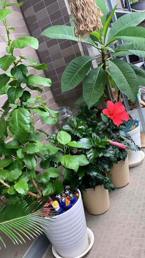 帰ってきてベランダに出て1番に見るのがこのハイビスカス🌺達なんだけど昨日咲いてた子は枯れちゃったけどまた違う子が咲いてた🌺