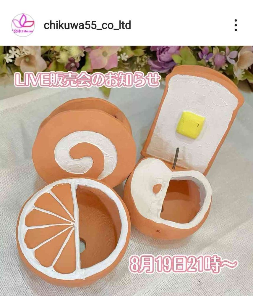 (インスタアカウント @chikuwa55_co_ltd )のインスタライブ販売会でtsukiの小さなテラコッタ鉢を委託販売していただきます。