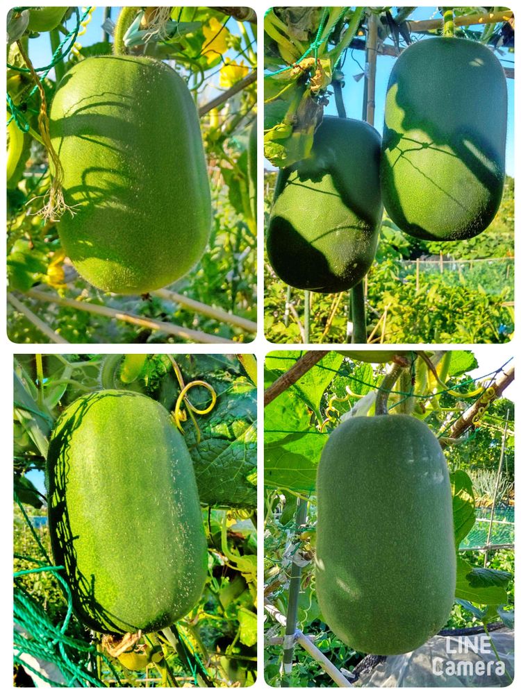 家庭菜園に冬瓜がたくさんぶら下がっていました。