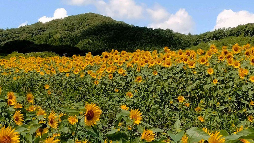 山と向日葵、なんだか懐かしい夏の風景