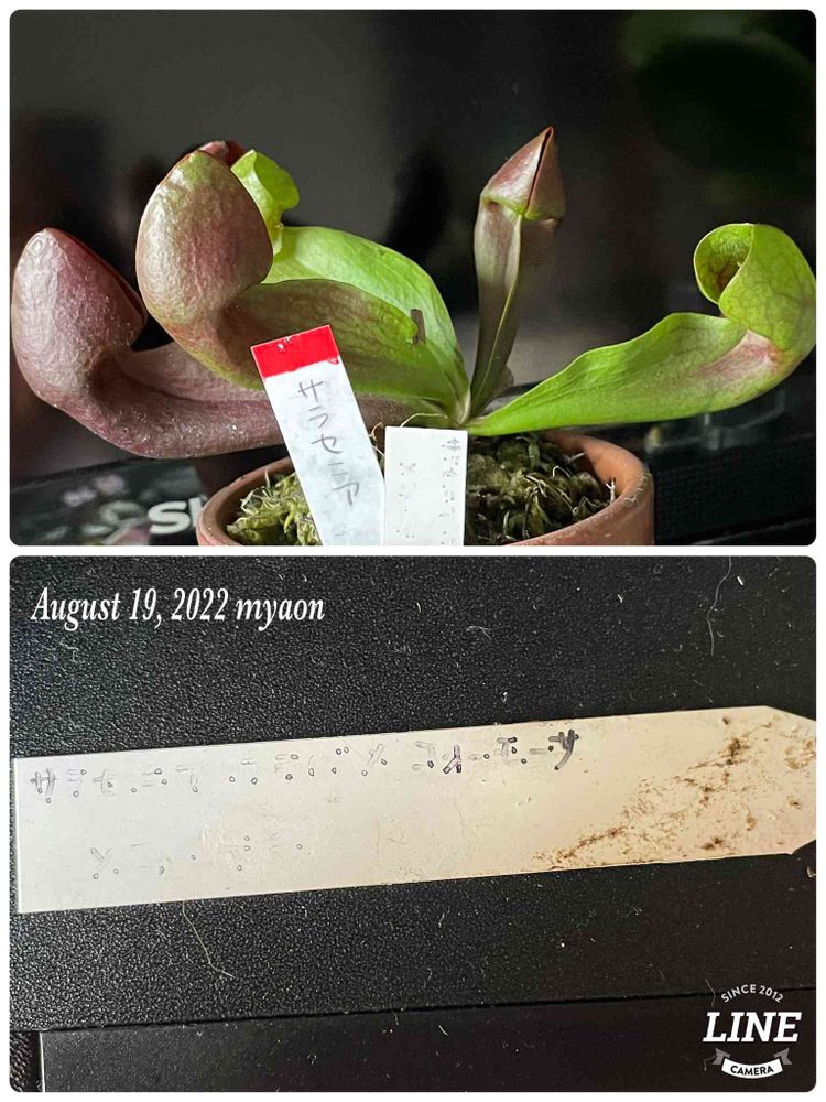 品種の札があったのですが…経年劣化のため?読めない…サラセニア フラバ ×コォーモーサ×コ???最後はお手上げ〜って感じです。