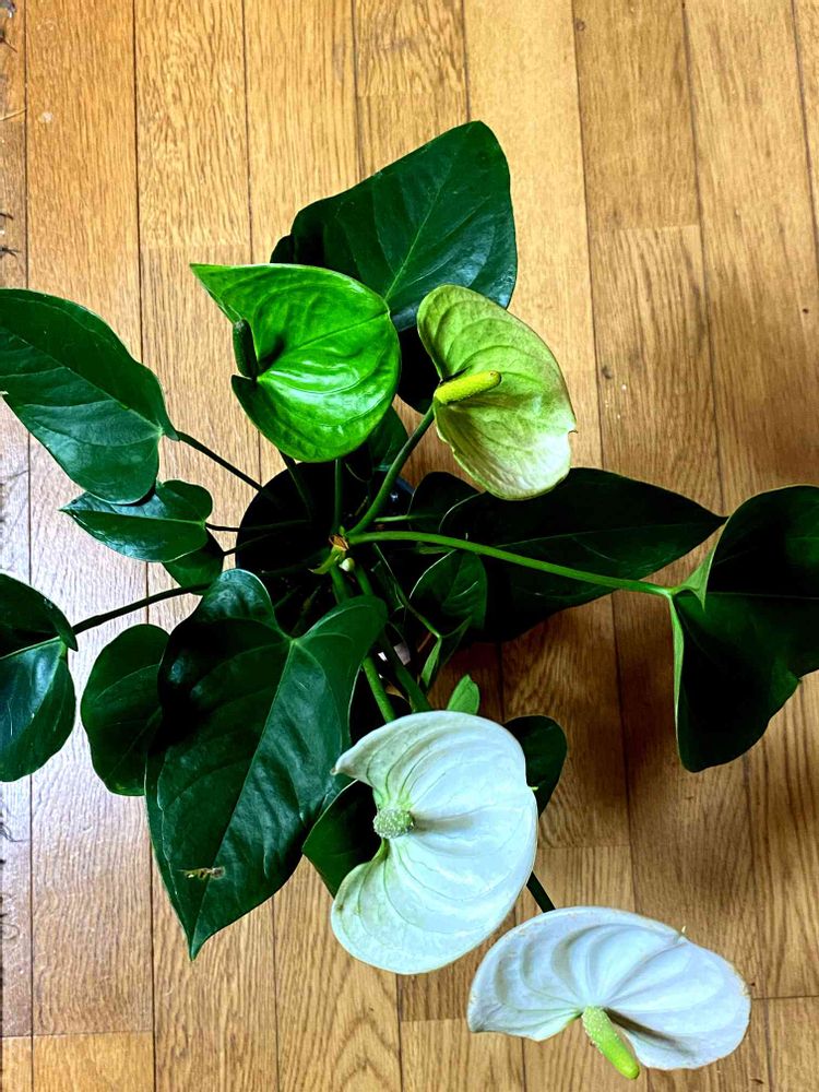 我が家のアンスリウムの真上からの眺めです〜。 次に顔を出すのは何色の子だろう🤔
