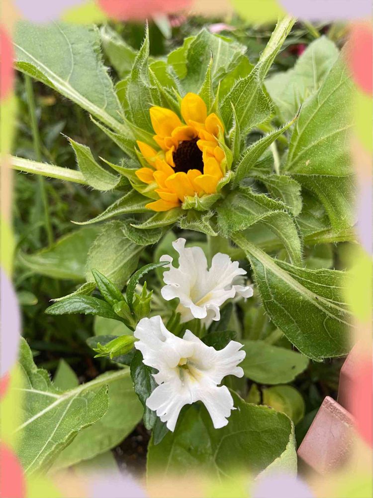 ミムラスとミニひまわり🌻が、一緒に、咲いている姿は、可愛いですネ