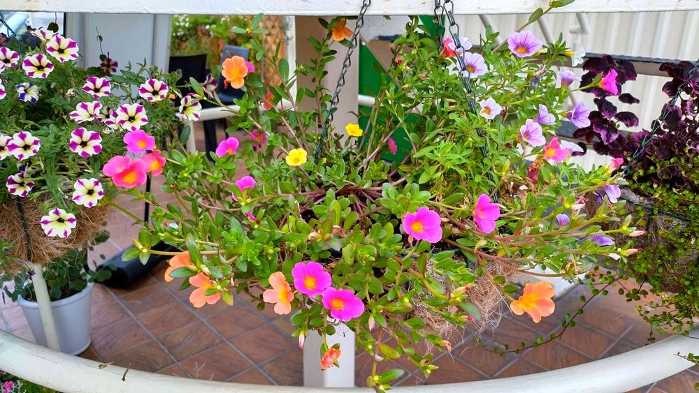 ハンキングバスケットのポーチュラカはなかなかいいなと思いました。横に広がり華やかですね〜🤣🎶