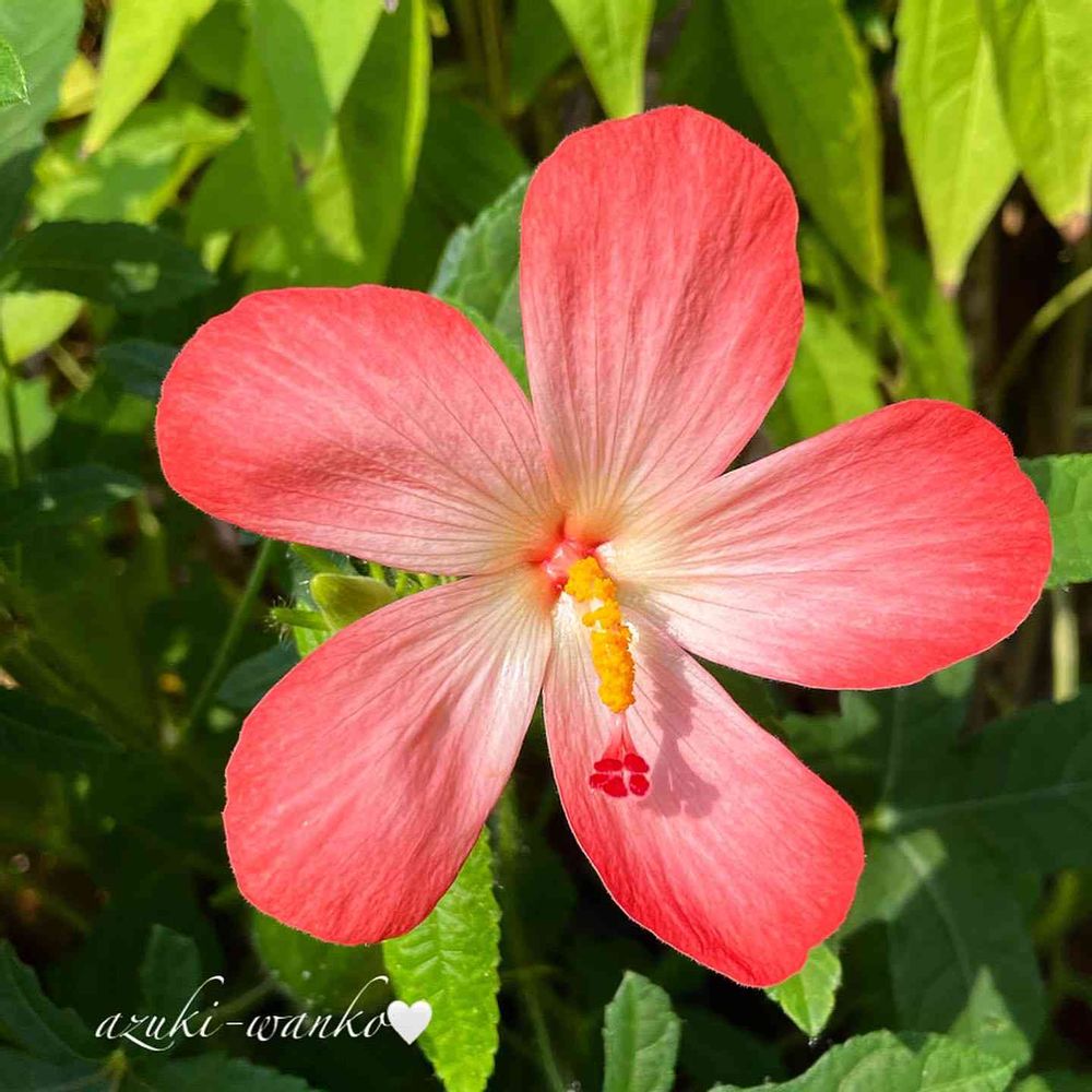ハイビスカスに似たアベルモスカスという花です。 優しい赤のグラデーションがとても綺麗なお花です。 花は小さいですが、綺麗な花が次々と咲いてとても綺麗です。 美しい花をお楽しみくださいね。🤗💕🌺🌿🌸🤍💚💛❤️🌿🐶🐾