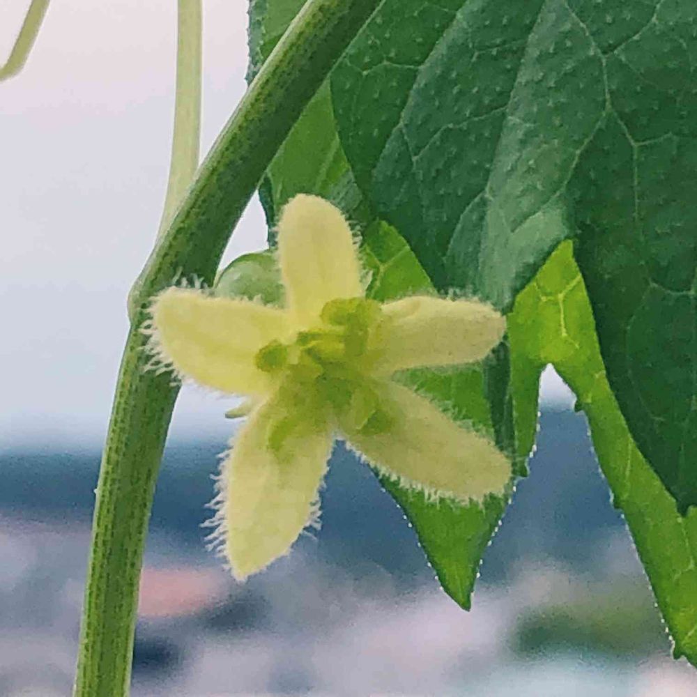 朝の水やりに蔓をジックリ見ていたら小さなお花が咲いてくれていましたよ🌼