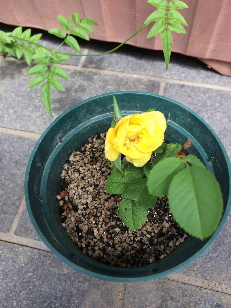 春に挿し芽した薔薇が花を咲かせてる🌹💛