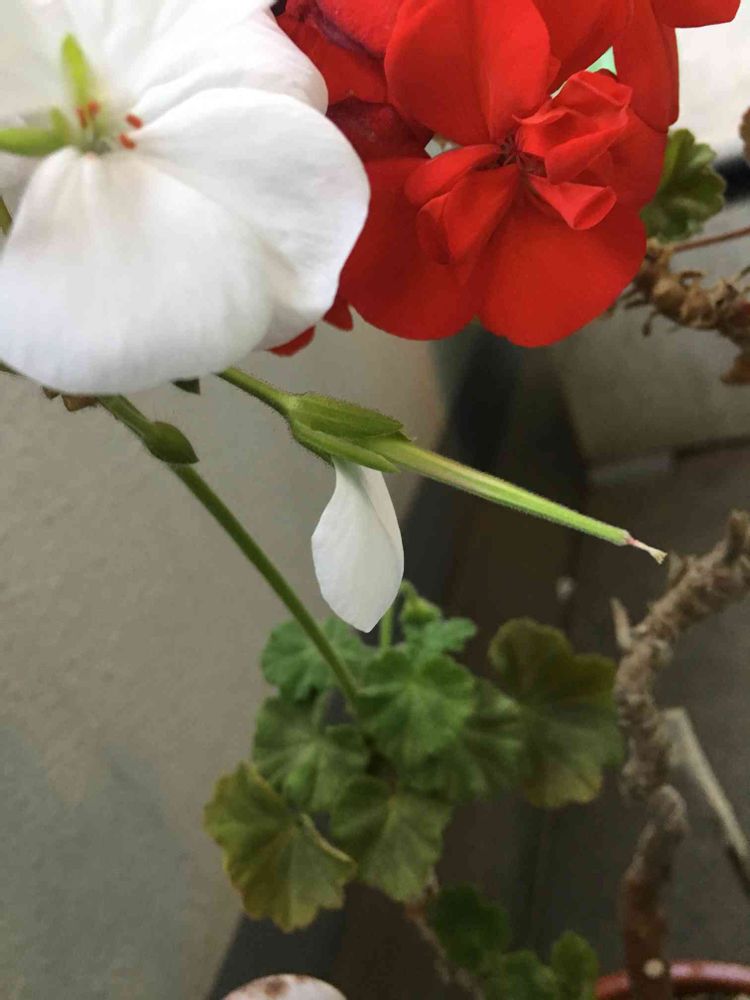 花の名前間違えてました!(笑)紅白のゼラニウム今日見たら自然受精でタネが出来てた〜(笑)