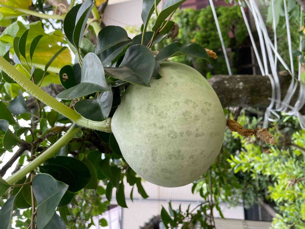 木に巻きついて登ったツルにひとつだけ実がつきました。