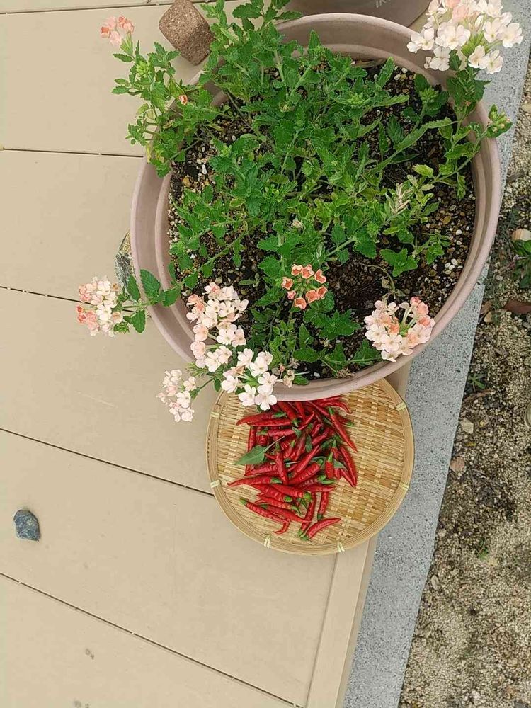 とうがらしとバーベナ、色の組み合わせが好きです😊