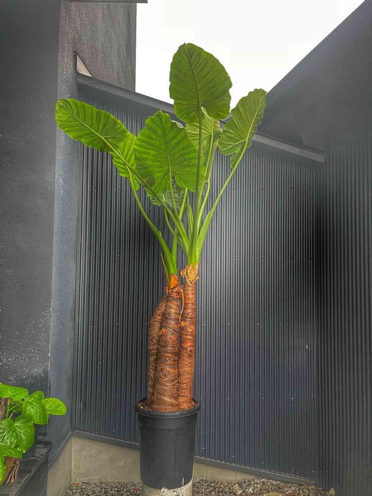 ちょっと下から煽り気味に撮影したので大きく見えますが高さは鉢を入れて180弱のウチのボスイモです🙌🙌