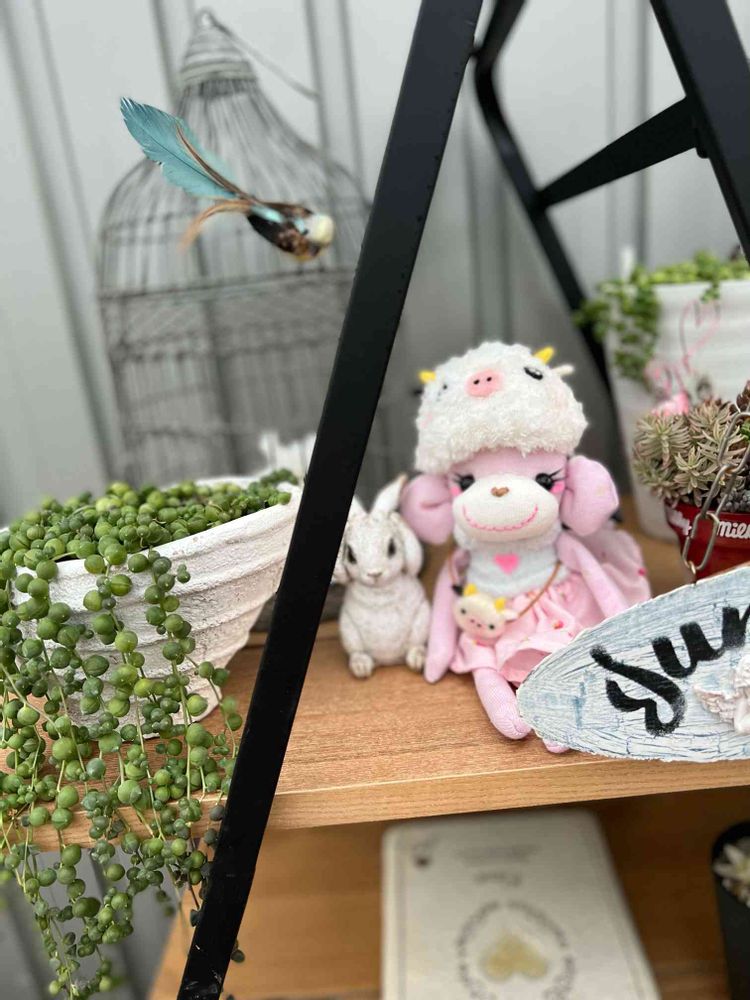 インスタで拝見した新しい飾り棚で、🐄バージョンソクモンちゃん💕🐰さんとツーショットかわいいネ💕