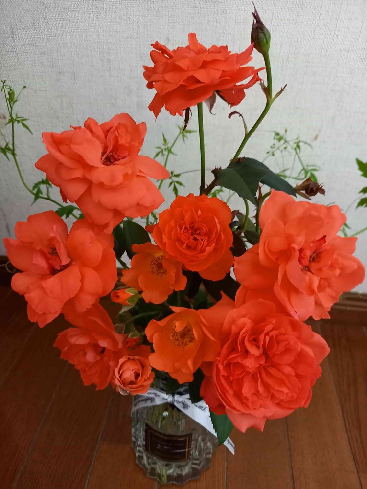 オレンジの薔薇、夏剪定しました。咲いていたお花はお部屋で楽しみます。🥰