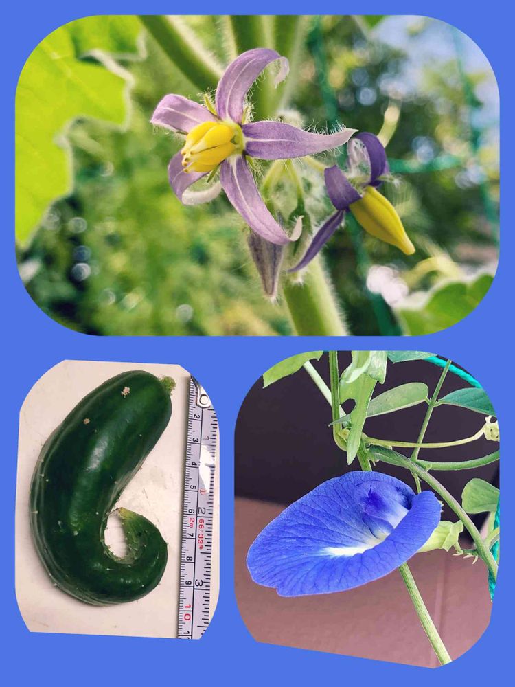 ↙️我が家の鉢植え🪴キュウリ🥒こんな へんな形になっちゃった😅💦