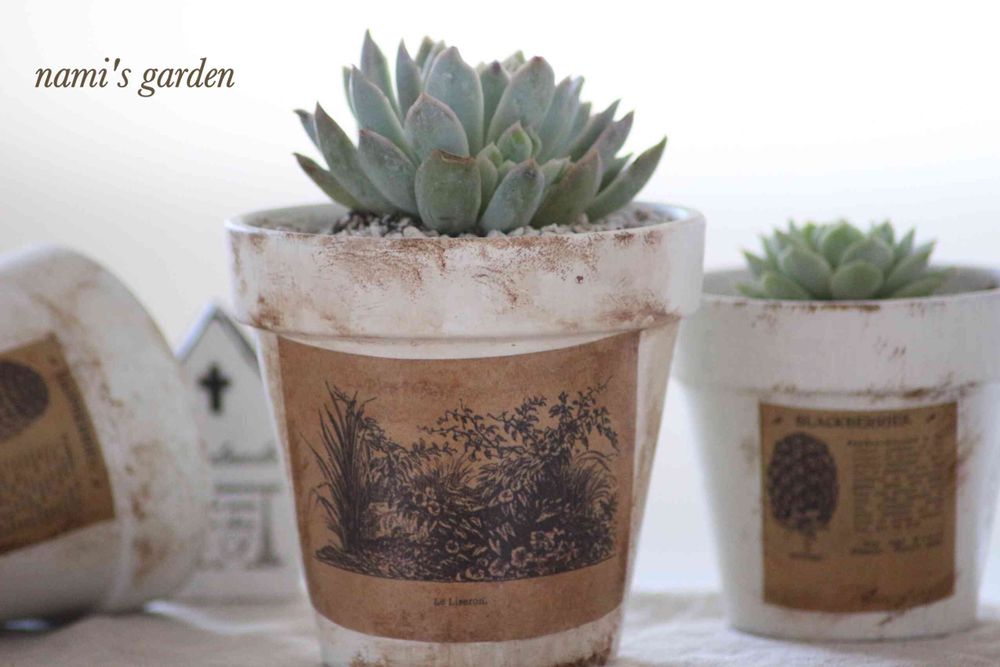 namiさんの多肉さんたちはハンドメイドの鉢も含めてオシャレな雑貨屋さんやカフェに置いてある作品のようです