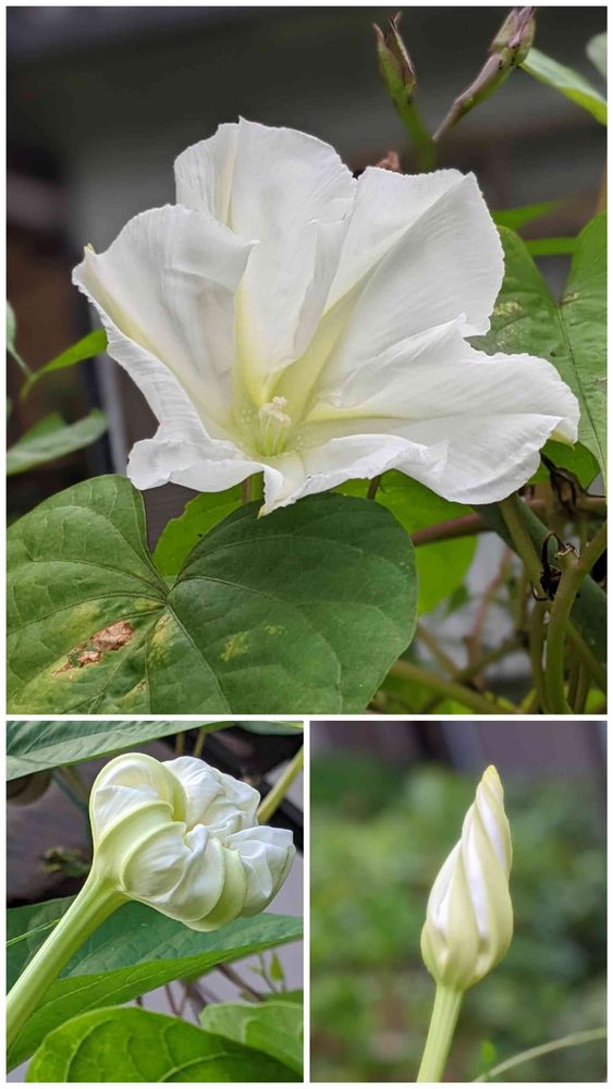当たり前だけど、夕顔はウリ科で、朝顔とは違うんだ、と花を見て納得しました。ヘチマや、冬瓜の類いですね💕