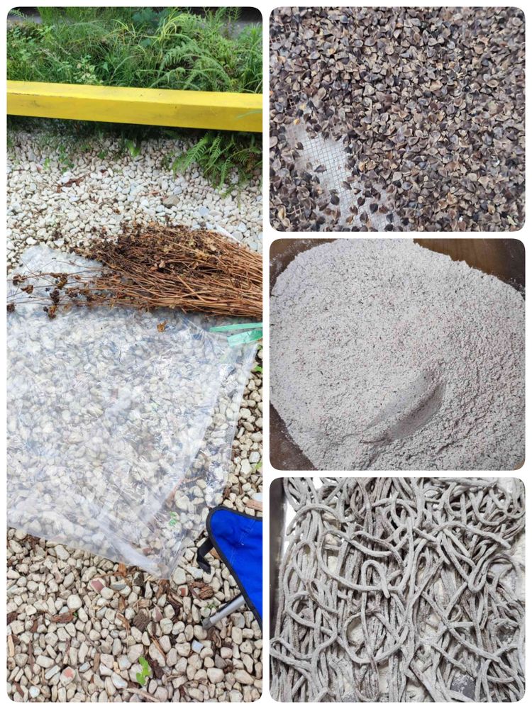 フードミルで粉にして、薄力粉を混ぜて蕎麦になりました。面倒くさい作業を頑張ってくれた夫でした。