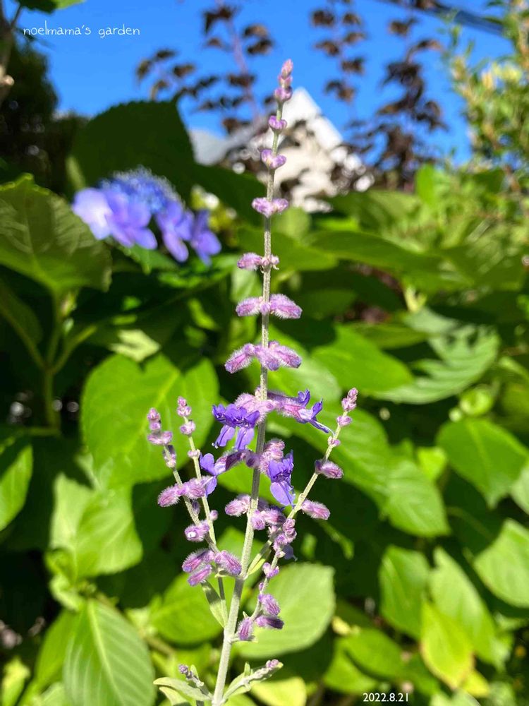 真っ青な空☁️に紫陽花💙そしてロシアンセージ🌿がとーっても爽やかね🤗✌️