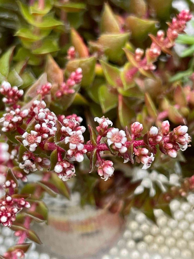 徒長みたいに三角に伸びてきて米粒より小さい白い点が出てきてら花でした😄