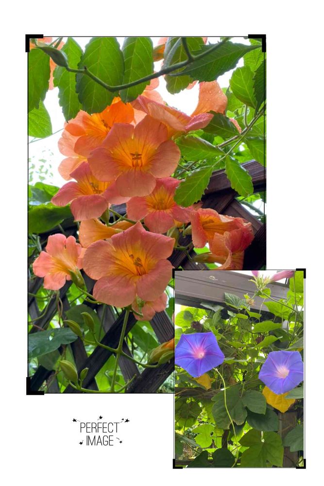さっちゃんさんの小さな庭,ノウゼンカヅラとオーシャンブルー,ウッドデッキの投稿画像