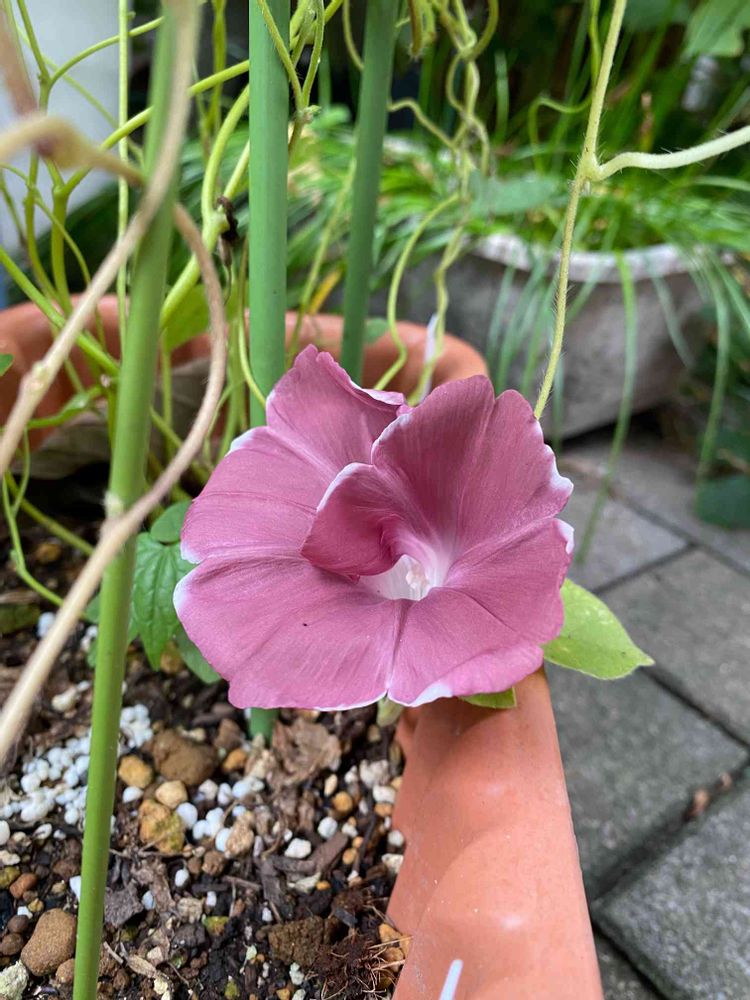 久しぶりのせいか、なかなか蕾を持たず 先端を摘みましたか?と言われて もう遅いかもと言われたけど咲いたのです🌸