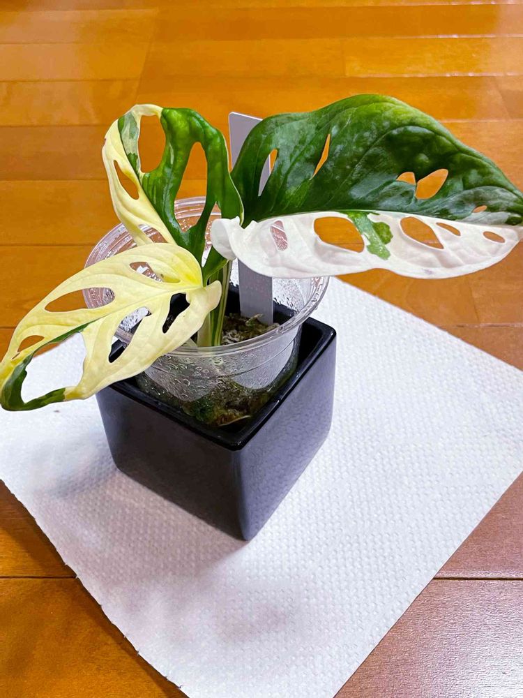 3鉢目にして、やっと我が家で斑入りのマドカズラの葉っぱが展開しました💕