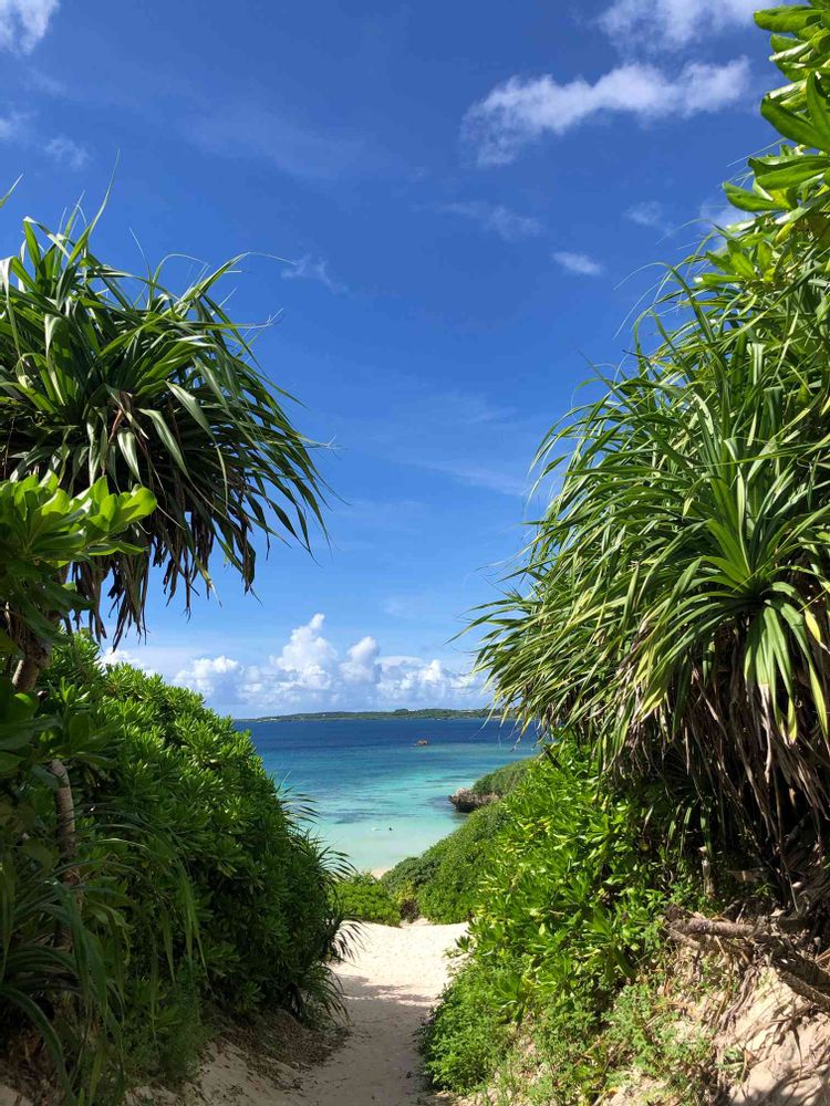 緑のブッシュを抜けると、そこはエメラルドグリーンの海。
