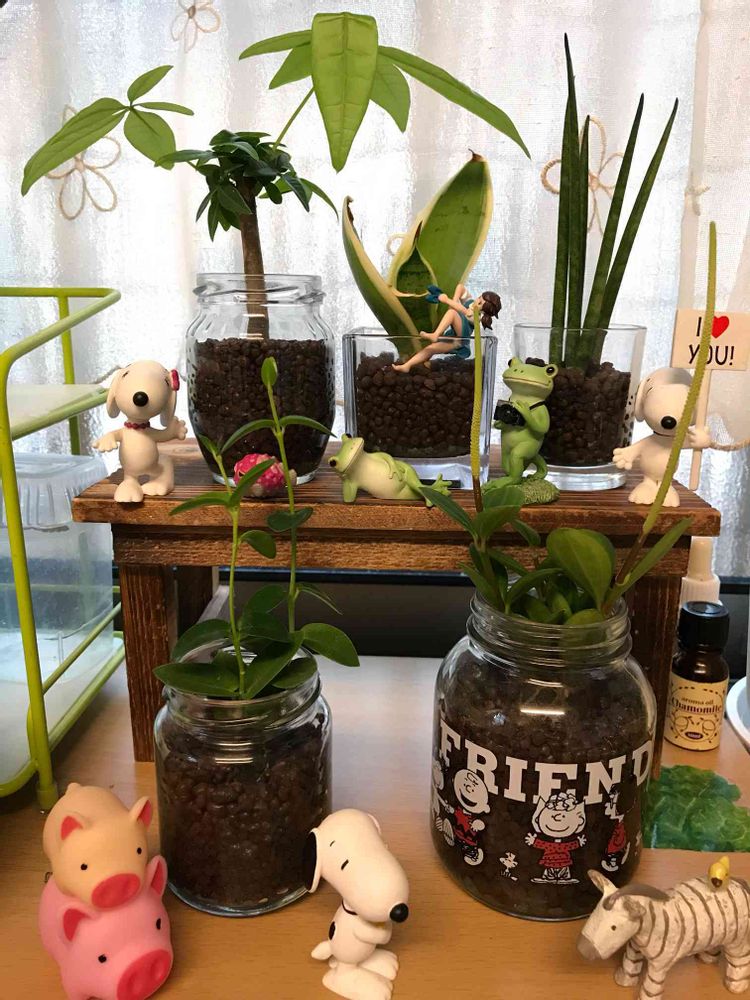 キッチンの窓辺ミニ観葉植物コーナーです🍃🌿🍀☘