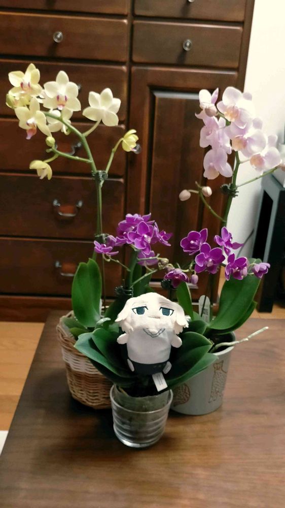 行きつけの花屋さんで胡蝶蘭が特売の598円で売っていたので、爆買したそうです💕