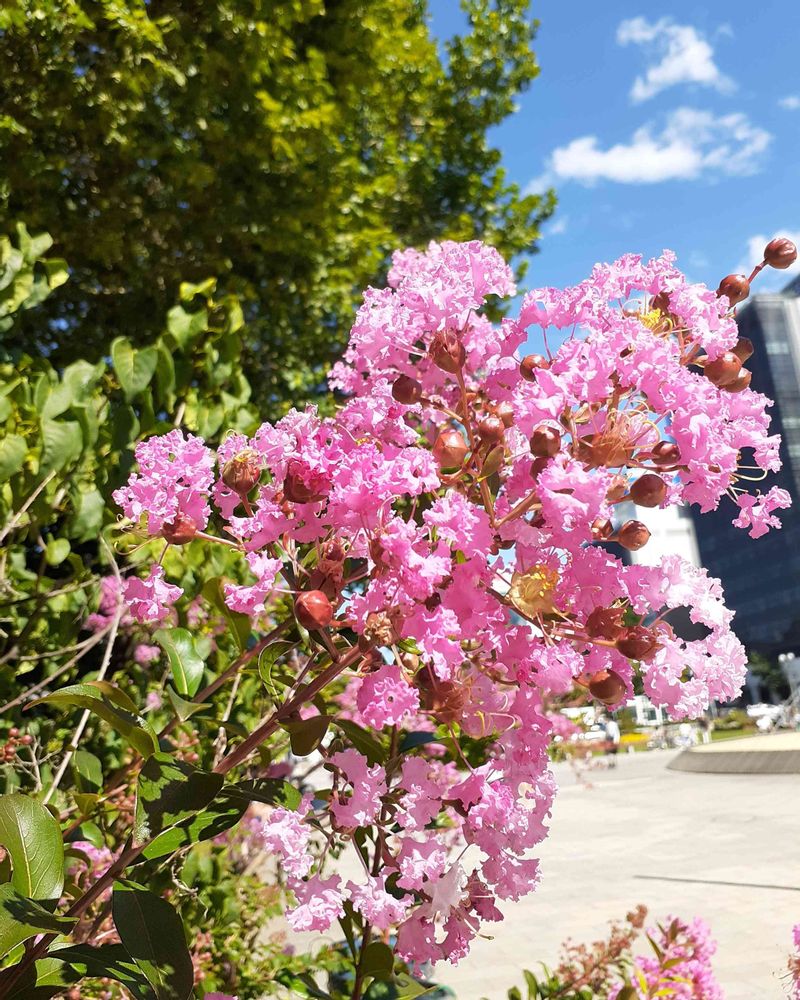 遠くからピンクパワーを感じて思わず近寄ってみましたら「イッサイサルスベリ(一才百日紅)」の花でした。いよいよ来週、『北海道マラソン』ですね🏃🏃♀️応援しますよ~✊‼️サルスベリさん、まだ咲いていてね♡