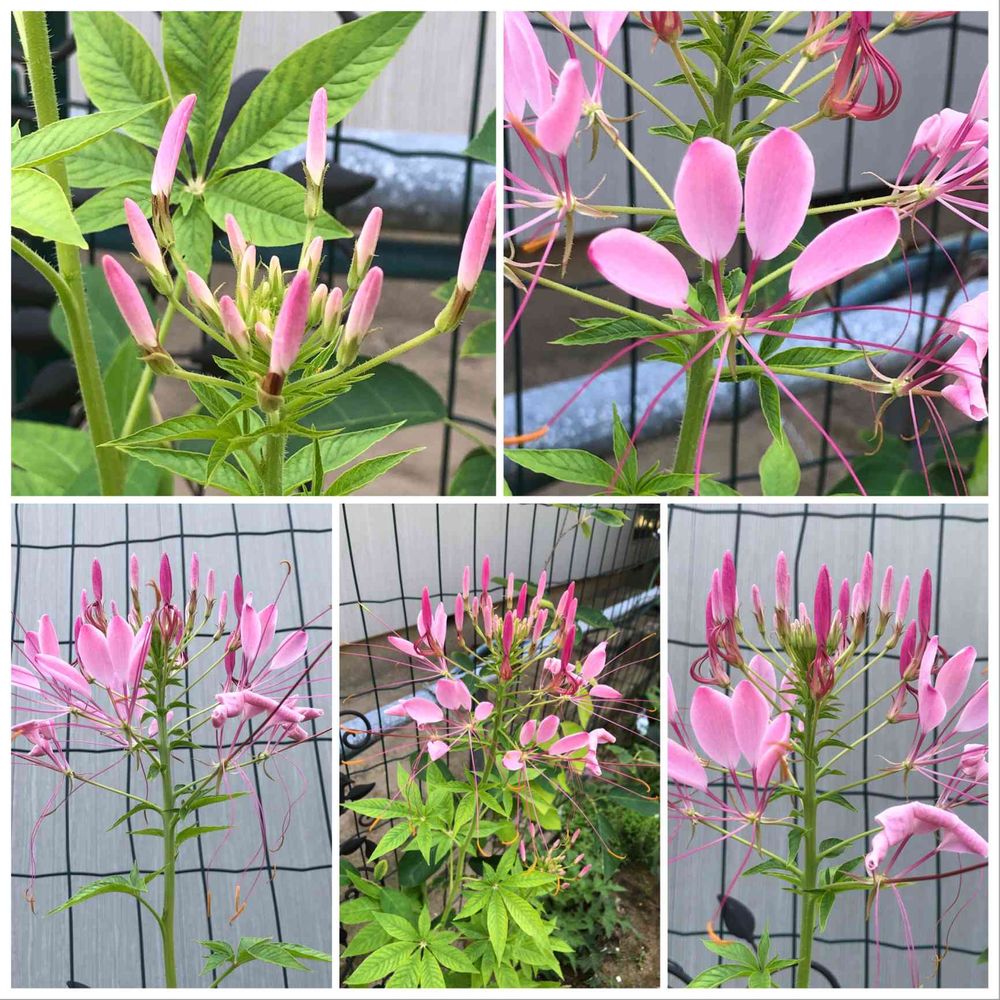 クレオメがとてもきれいに咲いていて、ピンク色の蝶々がたくさん飛んでいるようです💕