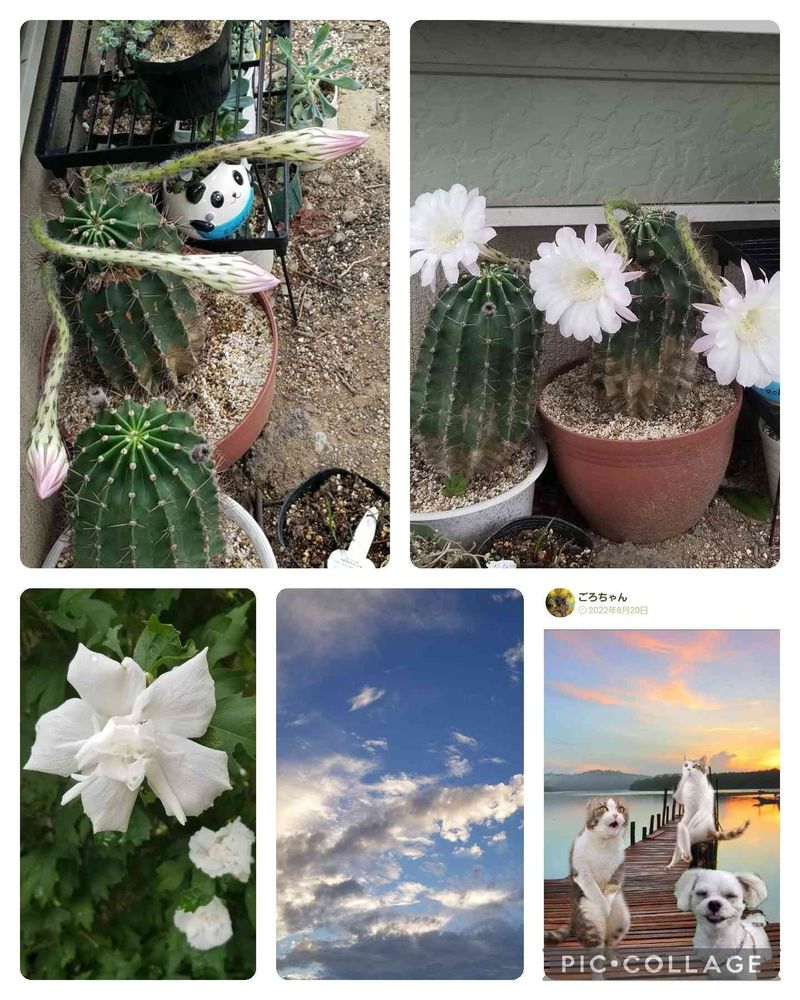 めいちゃん おはようございまーす。サボテン🌵さんメッチャ育ってる~😆お花さん開花~🎵ヽ(*´∀`)ノ♪メッチャ可愛く咲いたね〰️☺️白いムクゲさん〰️☺️メッチャ涼しげでメッチャ綺麗~🎵😆( ☆∀☆)レオちゃんねこ🐱ちゃんとお友達なんだね~🤣🤣🤣