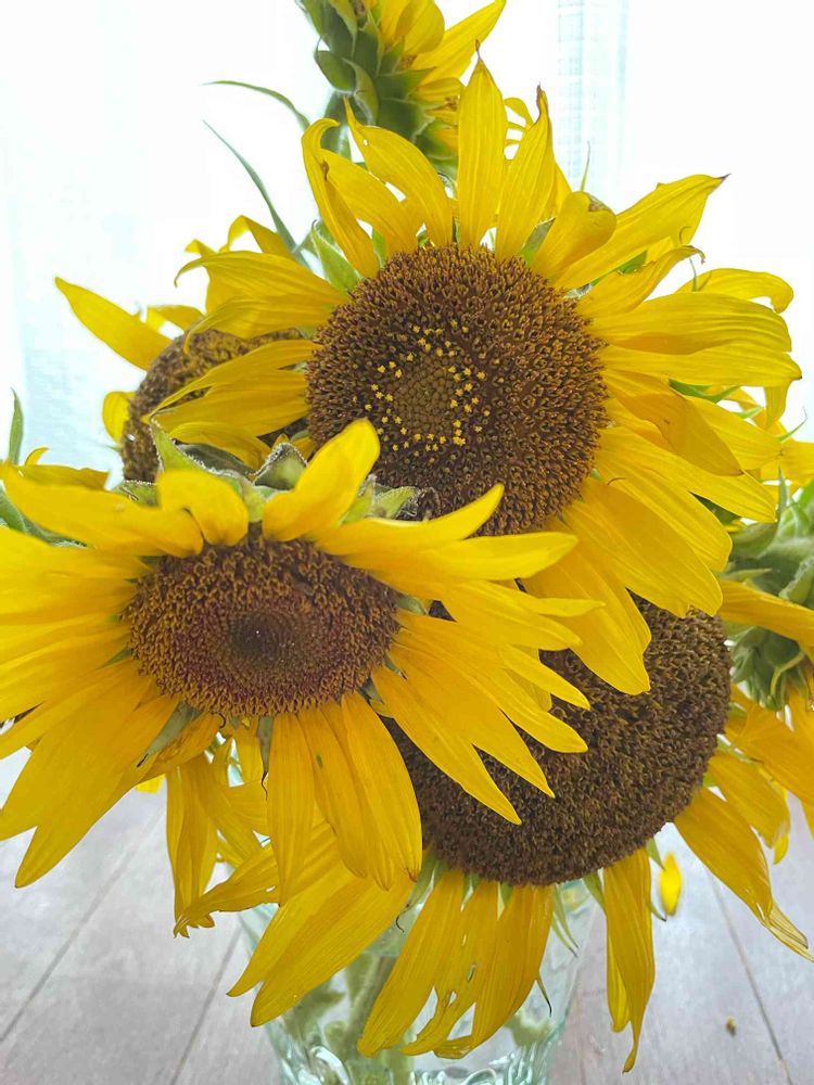 部屋に黄色いヒマワリが飾ってあると華やかでいいね🌻