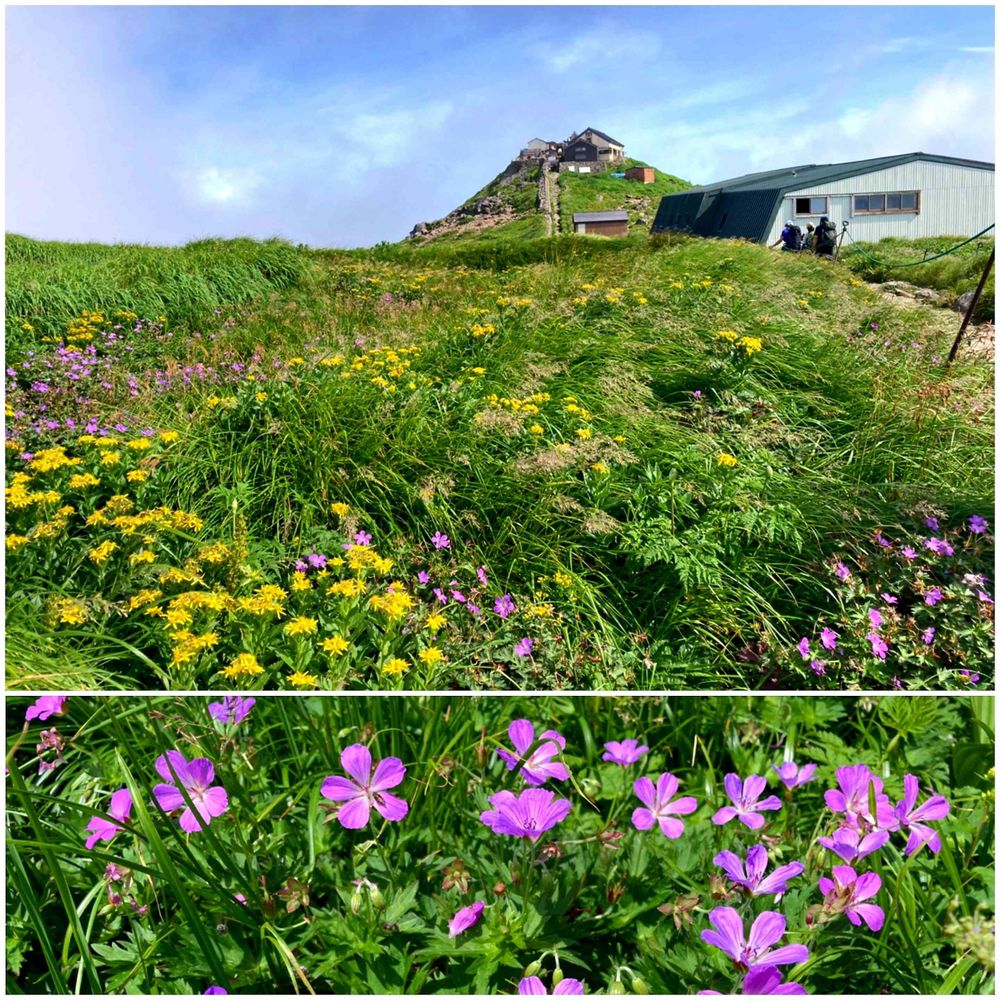 月山⛰️可愛いピンクのハクサンフウロ💗とミヤマアキノキリンソウにも見えますが👀‼️ビタミンカラーのキオン💛のお花畑に元気貰えます😊💕