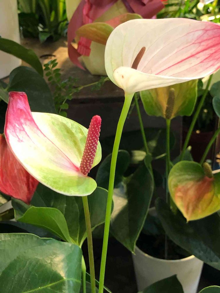 ちょっと変わった色合いのアンスリウムが咲いていました😊💕