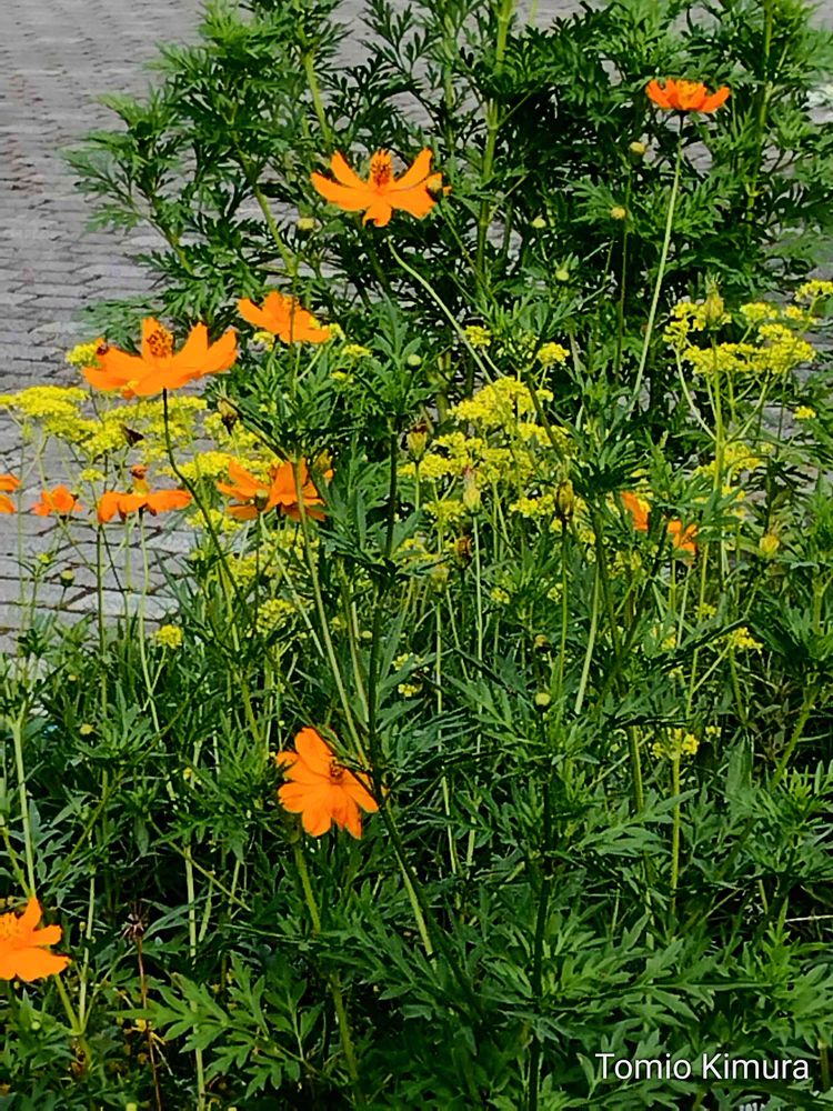 散歩道のキバナコスモスとオミナエシのコラボです。