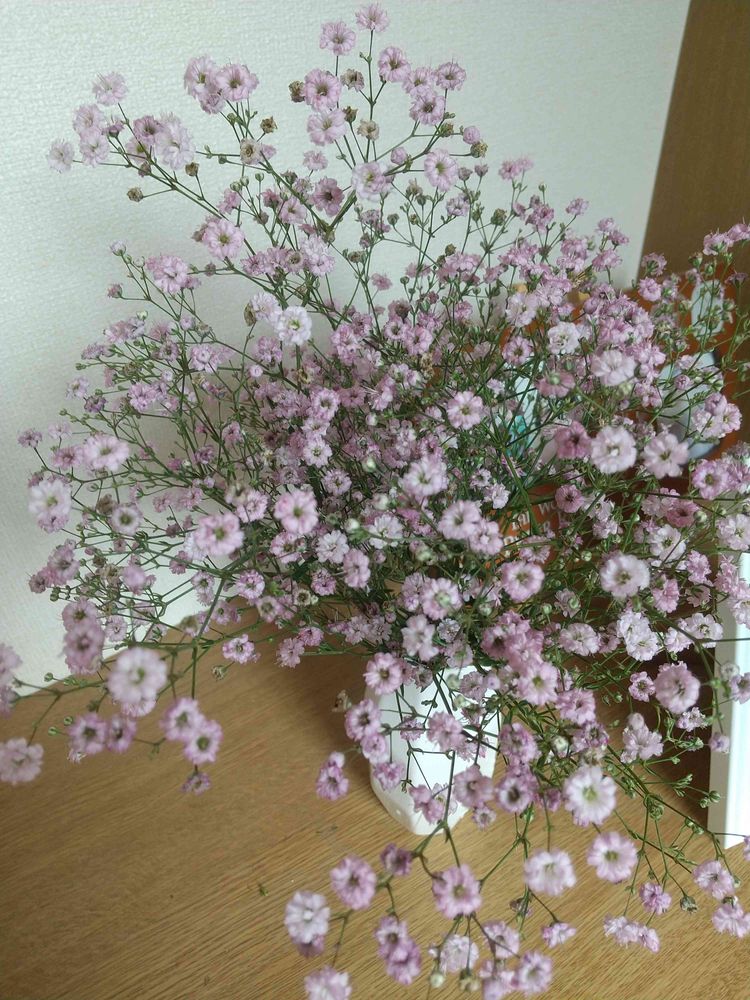 明日は雨風が強いみたいなので、かすみ草を切ってきて花瓶に飾りました。