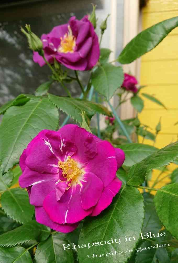 ラプソディーインブルー花数凄くて次々と咲きますね💞紫色は木陰が合いますね。うちはバイオレット🌹を木陰に入れています。大きくなって枝を伸ばして向こうのアーチまで届きました。咲くのが楽しみです。