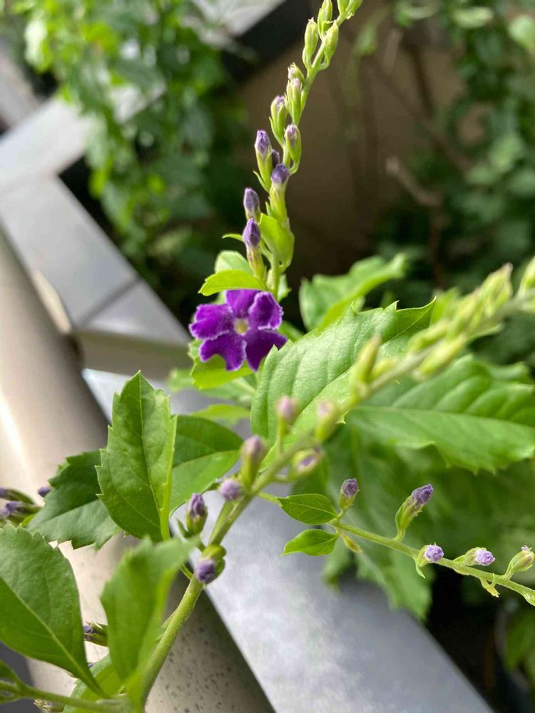 なかなか新芽を出さなかったデュランタさん。枯れてしまったかと思っていたら昨年の枝の横からしっかりと芽を出しやっと開花を始めました。10年以上のお付き合いだったのでほっとしました🪴 いつもの紫の花に癒されます😊