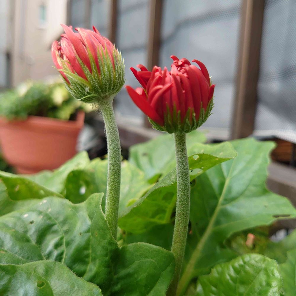 ティティさんのバルコニー/ベランダ,ガーベラの蕾.,花のある暮らし♡の投稿画像