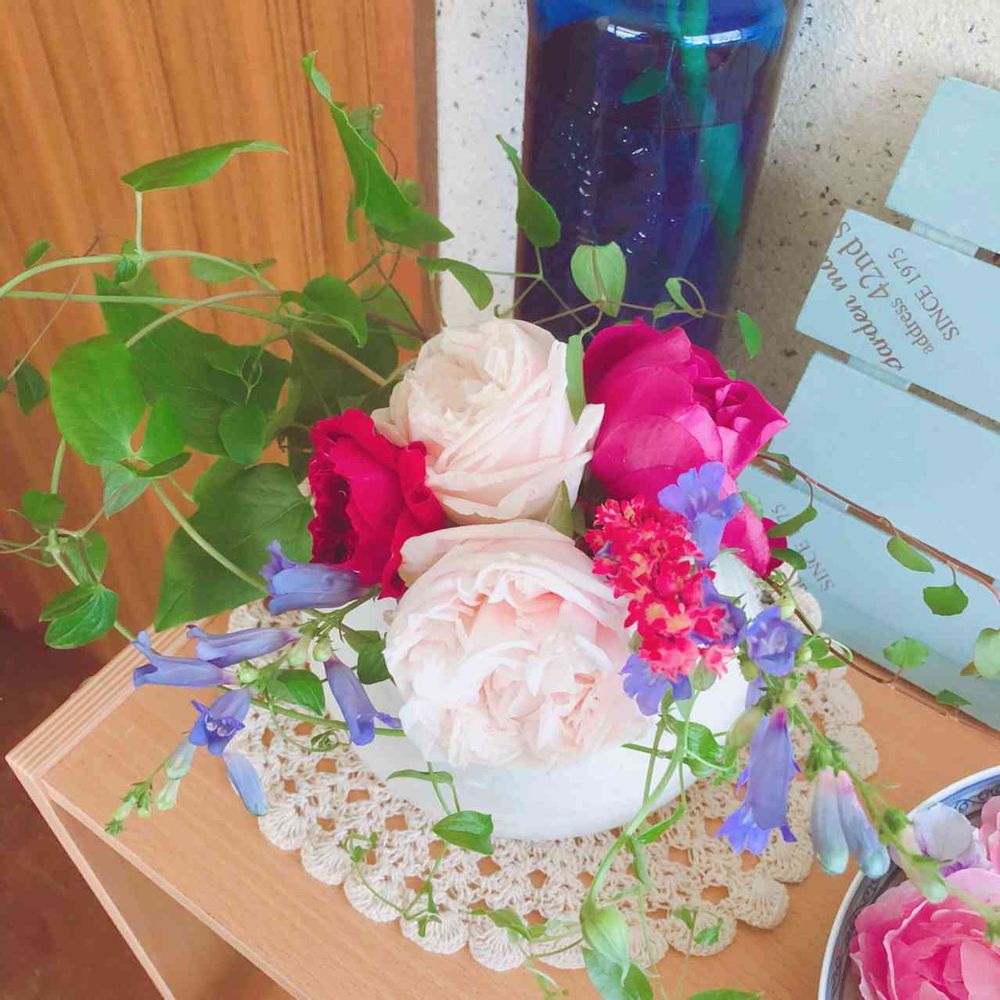 たまには庭で咲いたお花でなんちゃってアレンジメントしてみました❣️