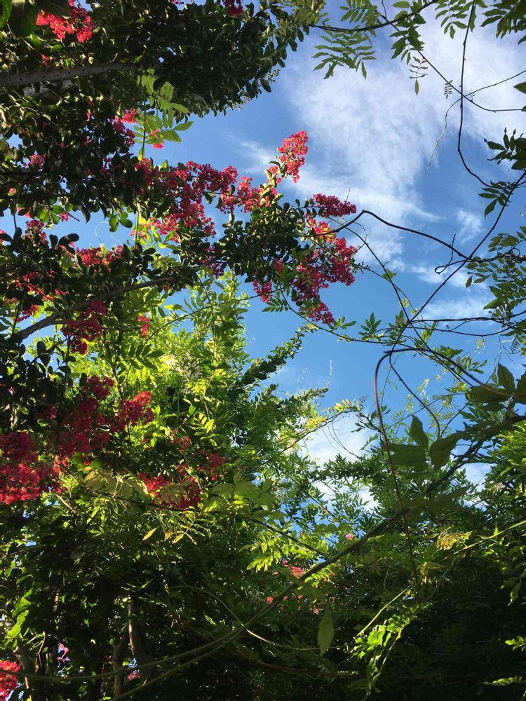 青空と百日紅と藤の蔦のクルクル🌀