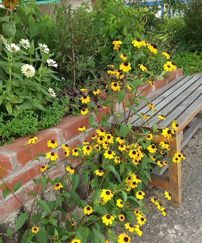 夏は花壇もお花が少なくなっていて、それだけに黄色のルドベキアが遠くからでも目立っています💛💛💛